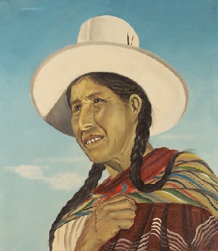 "Native-American Woman with Braids, Hat, and Blanket"14" x 16" |