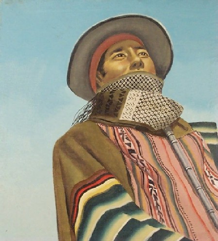 "Native-American Man with Headband, Scarf, and Blanket"14" x 16" |