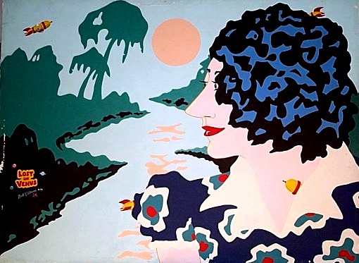 I'm having a tough time getting the colors to come out right on the digital image of this one, but trust me, its magnificent, even more so considering the oversize 3' x 4' dimensions. This piece may need an ever-so-slight amount of restoration, but sometime in the near future I would like to get it out of storage and up on the wall. A Pop Art masterpiece ...