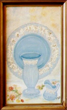 "Still Life with Light Blue Plate, Vase, and Pitcher"