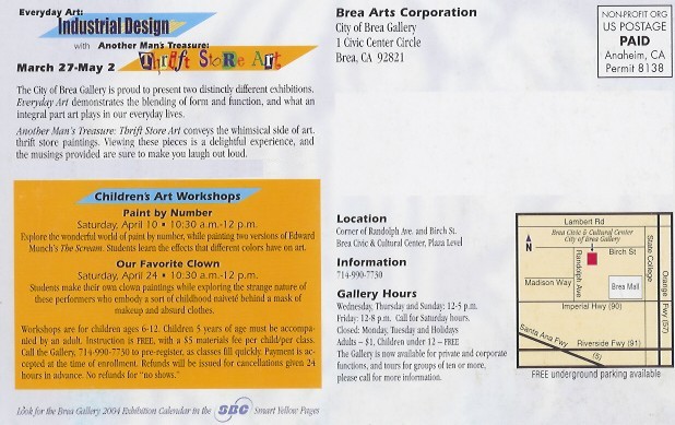 Certainly one of the best parts of attending the April 2004 City of Brea Thrift Store Art show was meeting Fred Beshid of the Museum of Fred and viewing his stellar collection. Fred still hasn't got around to photographing, cataloguing, and uploading his more than 200 paintings onto the web yet, but one day I hope to see them all displayed. Such a magnificent collection should be shared with humanity, not tucked away in boxes! During the show Fred and I discussed publishing another Thrift Store Art book to accompany the Jim Shaw masterpiece. Volume II would feature our collections and those of other Thrift Store Art aficionados. In the meantime I must thank Fred for his generosity in contributing the work at left to my collection. It hangs proudly in our hallway, and I smile every morning as I pass the painting on my way downstairs. One day I hope to repay Fred's generosity in kind, but as of yet I have not found a deserving enough gift (at least one that I'm willing to give up!). |