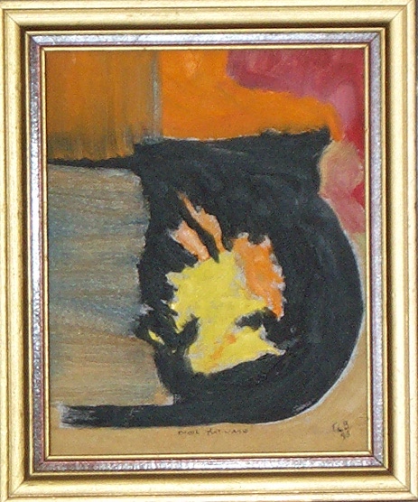I very much enjoyed your galleries on my first visit. In fact I cried with laughter, evoking a variety of responses from my neighbors in the library in which I was viewing them. I would take issue with you regarding a glaring error, however. In the picture "Black Kat Vase", your title neatly points to the obvious (and presumably deliberate) ambiguity of interpretation open to the viewer - feline or vessel - yet ignores the enigmatic inverted chick on the work, a level not immediately