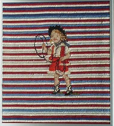 "Needlepoint Cowgirl in Red, White, and Blue"
