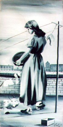 Another fine purchase from the catacombs of the local City Flea Market. Compositionally I think this painting is almost perfect, but the monochromatic color palette is the real prize here. I'm constantly kicking myself for not returning to the dealer where I bought this painting to purchase the 30 to 40 other works by Earley which were stored in a drawer in the back of his booth. They were selling for $3.00 apiece. At the time I reasoned that it would be too much trouble to put the paintings back on their wooden stretchers which had been removed for transport. When I realized my oversight and returned to buy the paintings a few weeks later they had already been sold. The works I missed out on utilized the same bluish color scheme as the stretched canvas shown here, and the subject matter of those paintings ran the gamut from landscapes to portraits.