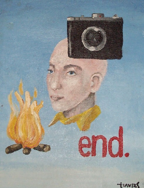 F.H.C.E. (Fire; Head; Camera; End) speaks to postmodernism at its best. Artist shows a keen awareness of the tenets of Dadaism, surrealism and Expressionism all the while maintaining a deliberately unfinished, raw brushstroke; a treatment that suggests his ideological deconstruction of "fine" art. The themes of deconstruction (and, additionally, evolution) are evident in /F.H.C.E.'s /subject material as well, as he was clearly indicating that man was born of fire, conversely created the camera, which in its snowballing technology signals the "end" or destruction/deconstruction of humanity.
