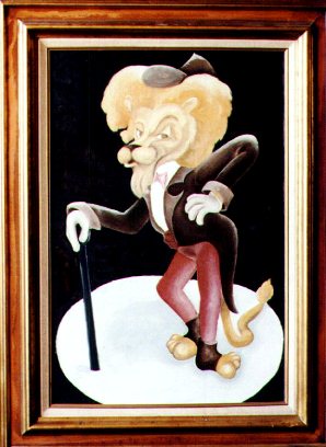 Brilliant! As an added bonus this beauty includes a fine faux gold frame to boot! Ah, if I only had room for them all. But alas, this painting takes it's own dignified place of honor inside my basement utility closet above the cat litter.