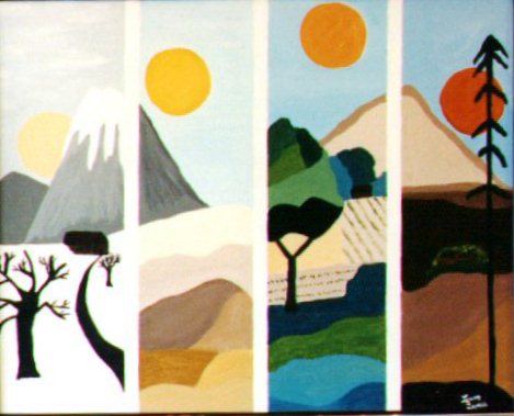 A masterpiece. Notice the languid arch of the rising and setting sun, the fascinating way in which Lavell has used three solid, vertical white lines to divide the canvas into four distinct and separate planes, and the sorrowful expressiveness of the barren fir at the far right to signal the coming of another cold winter.