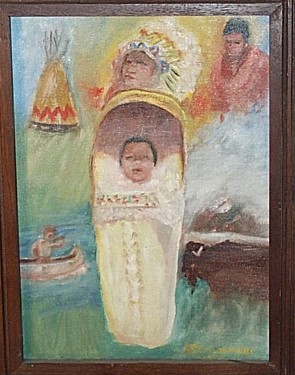 Question: Can someone please explain to me what in the hell is going on here with the head of an Indian chief on the body of an oversize papoose ?!?!?!?